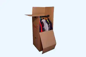 Como su nombre indica se parece a un armario con barra para colgar la ropa con perchas. Sirve para guardar y trasladar la ropa colgada de los armarios, ya sea para dejarla en un trastero o simplemente para su reubicación. Y de esa manera no tener que doblarla para luego volver a plancharla.